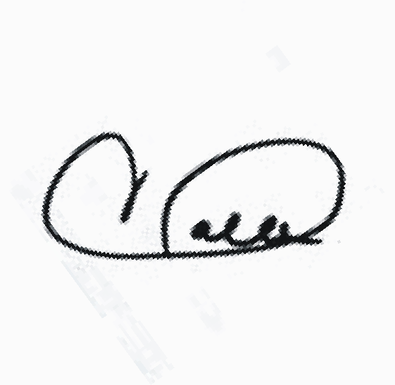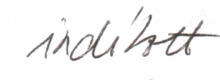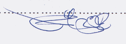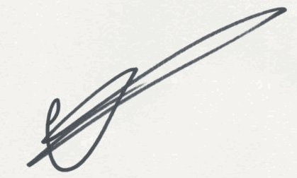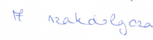 Szignószerű névaláírás, amely kardformát képez. Jól látható a markolat és az ahhoz kapcsolódó penge. Megvédem magam az ellenem irányuló veszélyektől.