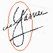 A szimbólumok "felfedezéséhez" gyakran elengedhetetlen az íráshordozó megfelelő mértékű szögbeni elforgatása. A jobb oldali ábrán az aláírás 180 fokos elforgatása látszik. Egy emberi fej kitátott szájjal és csodálkozó, ámuló tekintettel figyel egy előtte elrepülő lepkét. Valósággal rácsodálkozik az őt körülvevő természetre, világra.